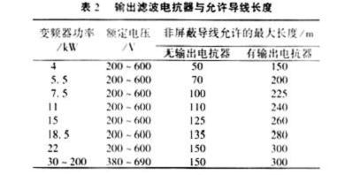 五、直流電抗器和輸出電抗器的作用 在有直流環節的變頻系統中,在整流器后接入直流電抗器可以有效地改善功率因數,配合得當可以將功率因數提高到0.95,另外,直流電抗器能使逆變器運行穩定,并能限制短路電流,所以很多廠家生產的55kW以上的變頻器都隨機供應直流電抗器。 輸出電抗器的主要作用是補償長線分布電容的影響,并能抑制變頻器輸出的諧波,起到減小變頻器噪聲的作用。有些廠家還提供有輸出電抗器與無輸出電抗器時,連接電機的導線允許的最大長度,表2是常州博邦電氣公司提供的數據。