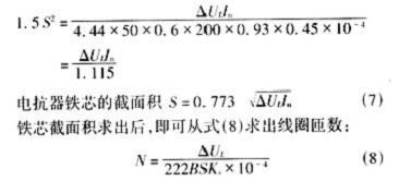 六、輸入電抗器的設計計算 當選定了電抗器的額定電壓降ΔUL,再計算出電抗器的額定工作電流In以后,就可以計算電抗器的感抗XL。電抗器的感抗XL由式(3)求得:XL=ΔUL/In(Ω)(3) 有了以上數據便可以對電抗器進行結構設計。 電抗器鐵芯截面積S與電抗器壓降ΔUL的關系,如式(4)所示: