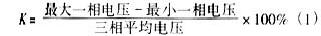 2.三相電源電壓不平衡率大于3%。電源電壓不平衡率K按式(1)計算:
