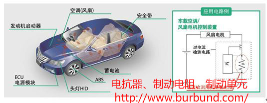 電流檢測(cè)用途的制動(dòng)電阻主要用于電機(jī)驅(qū)動(dòng)電路、電源的過(guò)電流保護(hù)及電池電量檢測(cè)。一直以來(lái)在汽車市場(chǎng)、工業(yè)設(shè)備市場(chǎng)、電腦市場(chǎng)等應(yīng)用廣泛,尤其是在近年來(lái)的汽車市場(chǎng),受電動(dòng)汽車、混合動(dòng)力車開發(fā)的帶動(dòng),在整個(gè)市場(chǎng)的應(yīng)用的高性能化和電子化發(fā)展迅速。