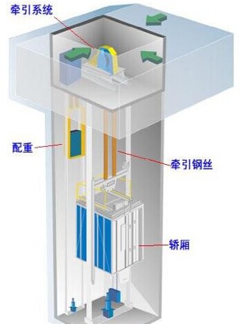 電梯的組成部分: 機械部分:轎廂、曳引機、電機、鋼絲繩、配重、限速器等; 電氣部分:變頻器、PLC、內外招控制板、制動單元、制動電阻、控制轉換板等