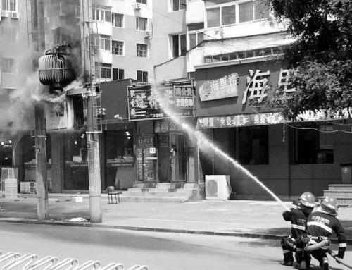 爆炸聲響過不久,變壓器(電抗器)下面的電箱逐漸有煙冒出,越來越大。有人發現,電箱里居然有火苗!旁邊水果超市的售貨員立刻撥打119報警。隨著火勢越來越大,電箱上面的變壓器(電抗器)也被波及。周邊的水果攤位與車輛立刻撤離。不一會兒,消防車與電力搶修車來到現場,消防官兵用水槍將火熄滅。