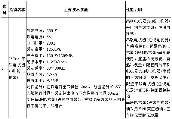 新疆250kV串聯(lián)電抗器(進線電抗器)購置項目技術規(guī)范 一、總則 本技術規(guī)范用于250kV串聯(lián)電抗器(進線電抗器)的招標,內(nèi)容包括該系統(tǒng)的主要功能、技術指標及必需的事項;本技術規(guī)范書提出了最低限度的技術要求,但未對一切技術細節(jié)作出規(guī)定,也未充分引述有關標準和規(guī)范的條文,供方應提供符合本技術規(guī)范書和最新國家標準的優(yōu)質產(chǎn)品;本技術規(guī)范書所用的標準如與供方所執(zhí)行的標準不一致時,按較高標準執(zhí)行。